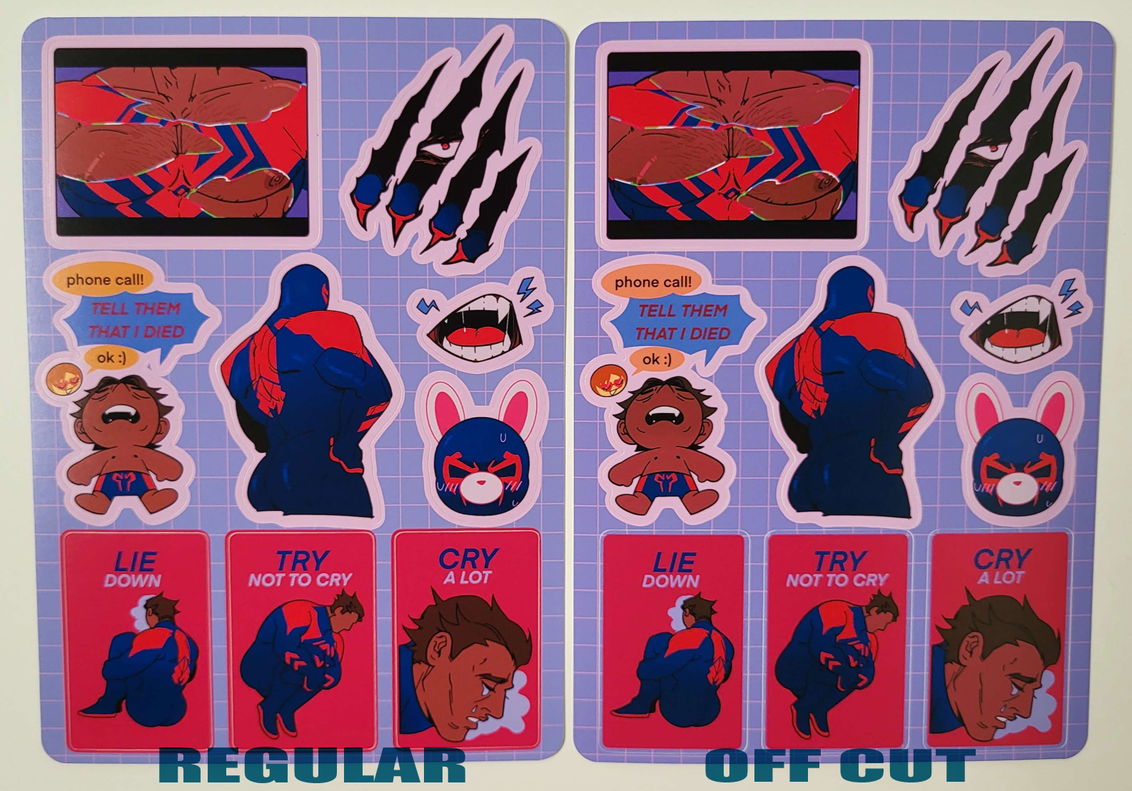 A sticker sheet which highlights all of Spiderman 2099's most SHOCKING features. He doesn't have web powers, but that won't stop him from sticking!
